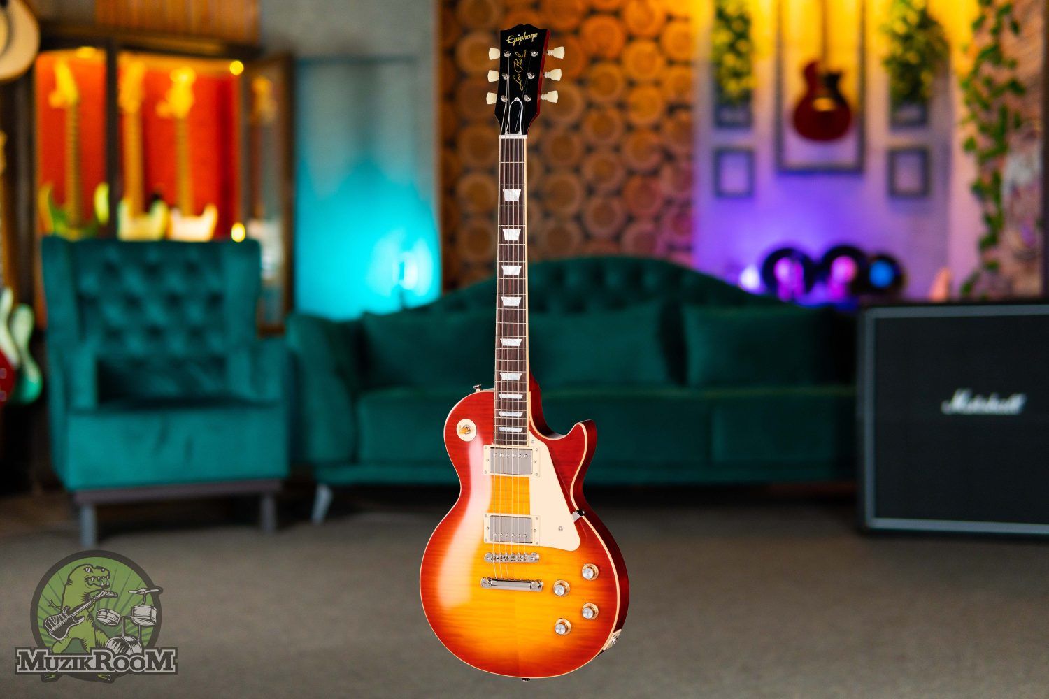 Гитара Epiphone 1960 Les Paul Standard в отделке Washed Cherry Sunburst имеет деку из красного дерева с топом из клена, винир топом из огненного клена класса ААА. Вклеенный гриф из красного дерева профилем 60s SlimTaper™. Палисандровая накладка радиусом 12 дюймов оснащена универсальной мензурой 24.75 дюйма, 22 Medium Jumbo ладами и инкрустацией в виде белых трапеций.